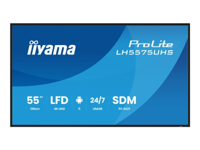 iiyama ProLite LH5575UHS-B2AG - 55" Diagonal klass (54.6" visbar) LED-bakgrundsbelyst LCD-skärm - digital skyltning - med inbyggd mediespelare, SDM Slot PC - 4K UHD (2160p) 3840 x 2160 - svart (ram), matt finish LH5575UHS-B2AG
