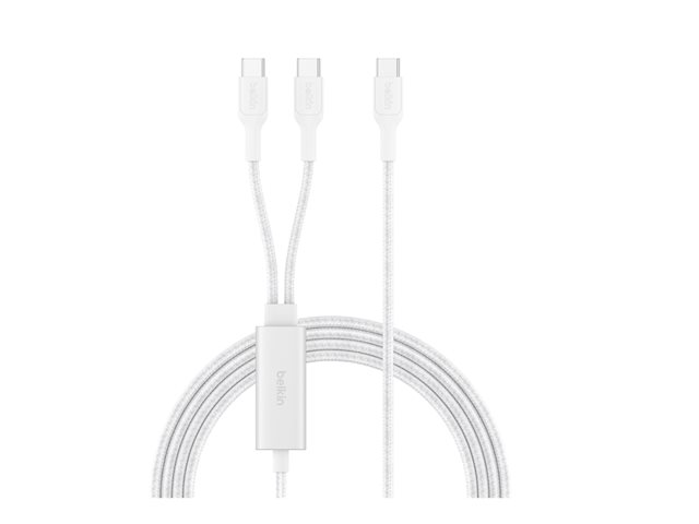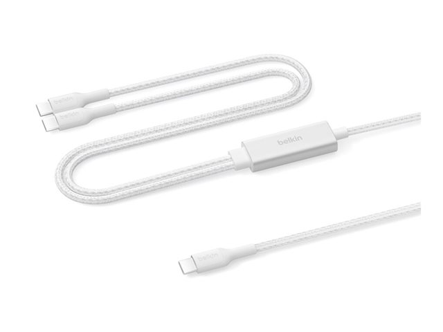 Belkin BoostCharge Pro - USB-kabel - USB-C (hane) till USB-C (hane) - USB 2.0 - 1.5 m - USB Power Delivery (140W), flätad kabel - vit