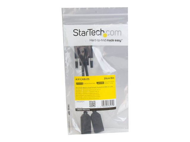 StarTech.com 20 cm DMS-59 till Dual DisplayPort-adapterkabel - 4K x 2K Video - LFH DMS 59-stift (M) till 2x DisplayPort 1.2 (F) Y-splitterkabel - LFH-grafikkort till dubbla DP-skärmar - Bildskärmsdelare - DisplayPort (hona) till DMS-59 (hane) - 20.3 cm - formpressad, tumskruvar - svart