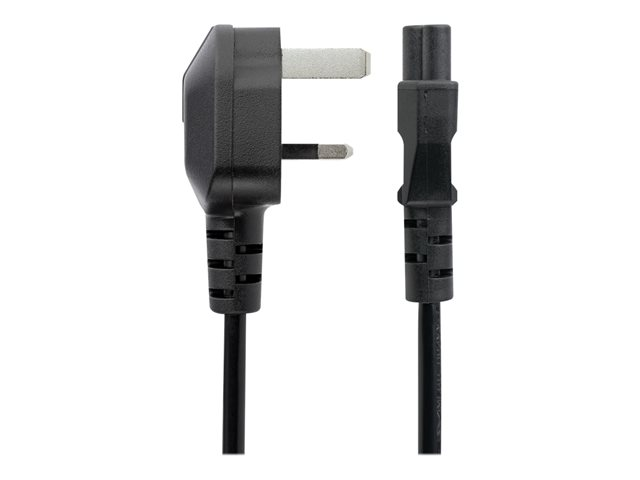 StarTech.com 2 m brittisk strömkabel för bärbara datorer, BS 1363 till C5 (Clover Leaf), 2,5 A 250 V, 18AWG, brittisk ersättningsnätsladd för bärbara datorer, nätsladd för skrivare, laddarkabel för bärbara datorer, strömförsörjningskabel för bärbara datorer - Strömkabel - IEC 60320 C5 till BS 1363 (hane) - AC 250 V - 2 m - formpressad - svart