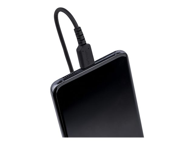 StarTech.com 50 cm USB C-laddningskabel, kraftig USB-C-spiralkabel för snabb laddning och synkronisering, USB 2.0 Type-C-kabel, robust aramidfiber, slitstark hane till hane USB-kabel, svart - USB-kabel - USB-C (hane) till USB-C (hane) - USB 2.0 - 3 A - 50 cm - lindad - svart R2CCC-50C-USB-CABLE