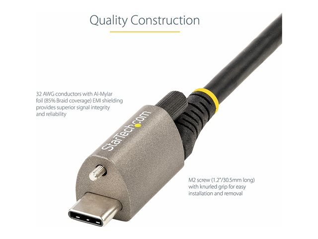 StarTech.com 50 cm toppskruvlåsande USB C-kabel 10 Gbit/s - USB 3.1/3.2 Gen 2 Type-C kabel - 100W (5A) Power Delivery-laddning, DP alt-läge - Enkel skruvlåsning - USB-C-kabel ladda/synkronisera - USB-kabel - USB-C (hane) rakt/lockande till USB-C (hane) rak - USB 3.2 Gen 2 / DisplayPort 1.4 /Thunderbolt 3 - 50 cm - stöd för 8K - grå, svart