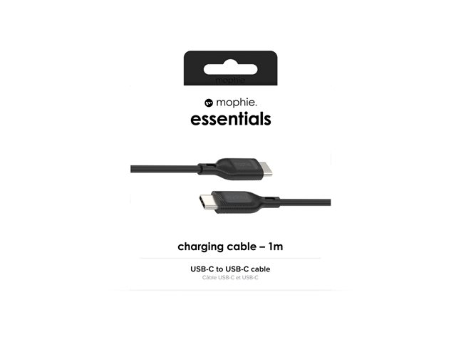 mophie essentials - USB-kabel - 24 pin USB-C (hane) till 24 pin USB-C (hane) - 1 m - USB Power Delivery (60W) - svart