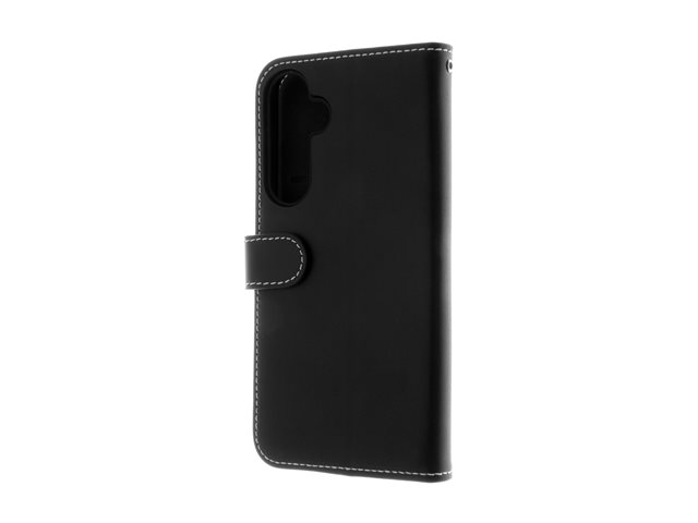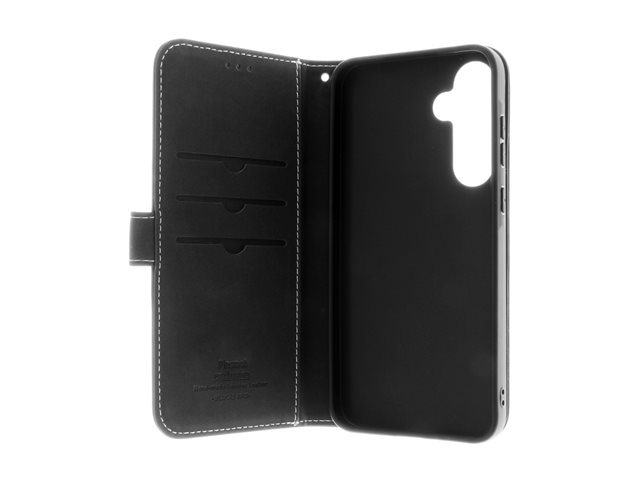 Insmat Exclusive - Baksidesskydd för mobiltelefon - genuint läder, kartong+papper+aluminiumfolie, termoplastisk polyuretan (TPU), bomullssömmar - svart - för Samsung Galaxy A55