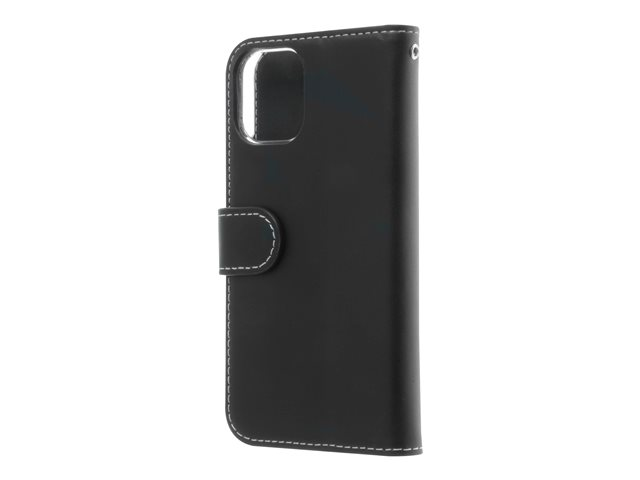 Insmat Exclusive Flip Case - Vikbart fodral för mobiltelefon - genuint läder, papper, kartong, polykarbonat, aluminiumfolie - svart - för Apple iPhone 12 mini