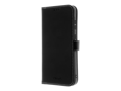 Insmat Exclusive - Vikbart fodral för mobiltelefon - genuint läder, hållare av termoplastiskt polyuretan (TPU), bomullssömmar, kartong+papper+aluminiumfolie - svart - för Samsung Galaxy S24 FE 650-3300