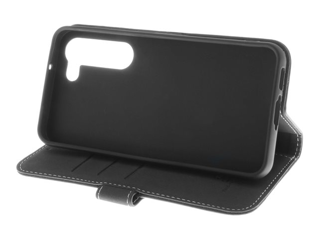 Insmat Exclusive - Vikbart fodral för mobiltelefon - genuint läder, papper, polyuretan, kartong, bomull, aluminiumfolie, brons, termoplastisk polyuretan (TPU) - svart - för Samsung Galaxy S23+ 650-3135