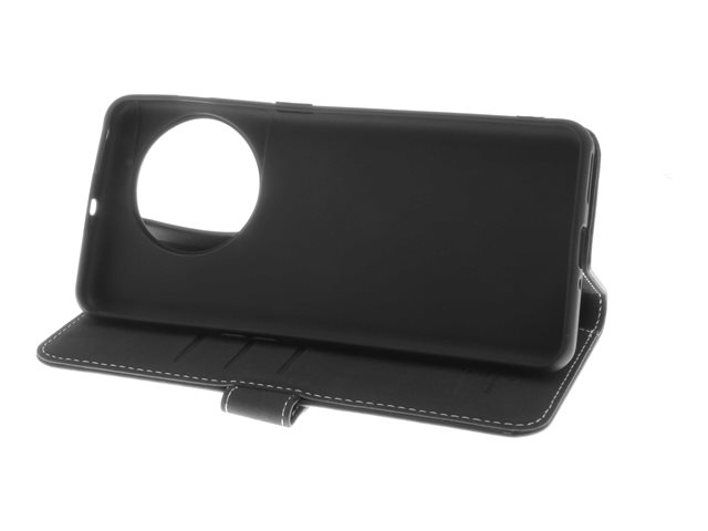 Insmat Exclusive - Vikbart fodral för mobiltelefon - genuint läder, termoplastisk polyuretan (TPU) - svart - för OnePlus 11 5G