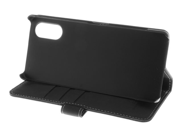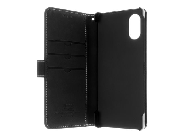 Insmat Exclusive - Vikbart fodral för mobiltelefon - genuint läder, termoplastisk polyuretan (TPU), kartong+papper+aluminiumfolie - svart - för Sony XPERIA 5 V