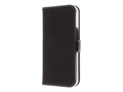 Insmat Exclusive - Vikbart fodral för mobiltelefon - genuint läder, termoplastisk polyuretan (TPU), kartong+papper+aluminiumfolie, bomullssömmar - svart - för Apple iPhone 13 Pro