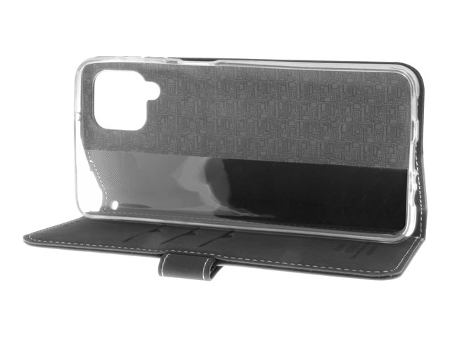Insmat Flip Case - Vikbart fodral för mobiltelefon - genuint läder, termoplastisk polyuretan (TPU) - svart - för Samsung Galaxy A12