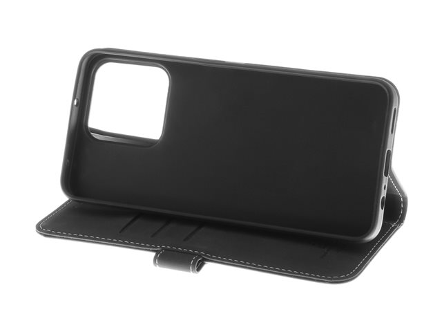 Insmat - Vikbart fodral för mobiltelefon - genuint läder, kartong+papper+aluminiumfolie, polykarbonat (PC), bomullssömmar - svart - för Honor 200 Smart