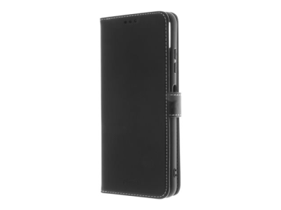 Insmat - Vikbart fodral för mobiltelefon - genuint läder, termoplastisk polyuretan (TPU), polyuretanklädsel - svart, galvaniserad bronsring - för Samsung Galaxy A22 5G