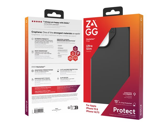 ZAGG Manhattan Snap - Baksidesskydd för mobiltelefon - MagSafe-kompatibilitet - silikon - svart - för Apple iPhone 13, 14, 15