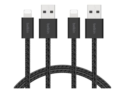 Belkin BoostCharge - Lightning-kabel - USB typ A hane till Lightning hane - 1.5 m - svart - flätad kabel (paket om 2) BBD012HQ05BK2PK