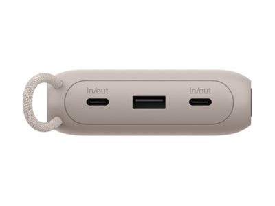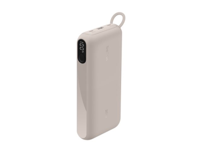 Belkin BoostCharge - Power bank - med display - 20000 mAh - 20 Watt - PD - 3 utdatakontakter (2 x USB-C, USB) - på kabel: USB-C - sand BPB028HQSD