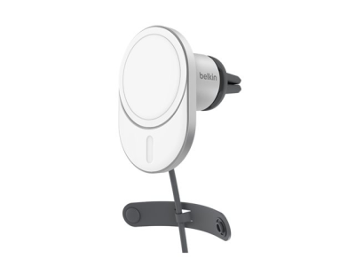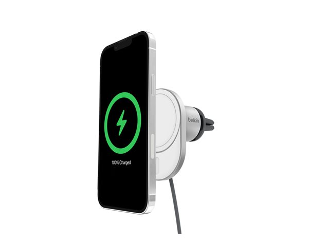 Belkin - Trådlös laddningshållare för bil - magnetisk med Qi2 + bilströmsadapter - 15 Watt - Fast Charge - grå WIC008BTGR-V2