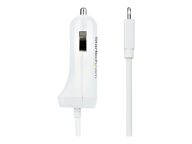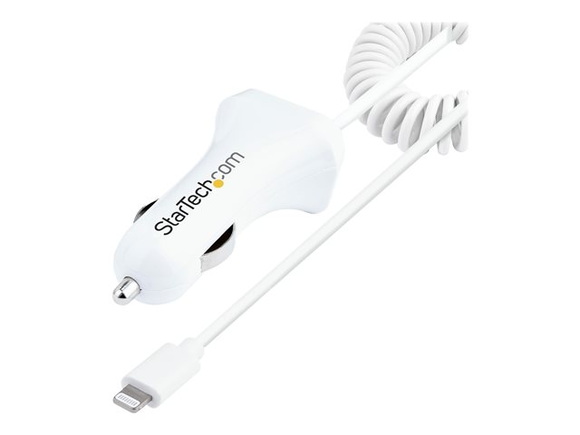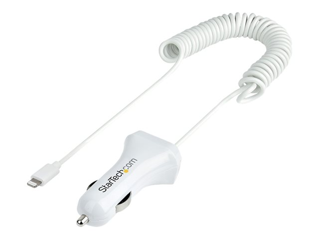 StarTech.com Lightning Car Charger with 1m Coiled Lightning Cable, 12W, White, 2 Port USB Car Charger Adapter for Phones and Tablets, In Car Apple iPhone/iPad Charger w/ Built-in Cord - Dual USB Car Charger (USBLT2PCARW2) - Strömadapter för bil - 12 Watt - 4.2 A - 2 utdatakontakter (USB, Lightning) - vit