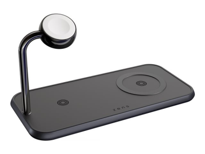 ZENS Dual+Watch Aluminium Wireless Charger - Trådlös laddningsplatta/laddningsstativ - magnetisk + växelströmsadapter - 20 Watt - Apple Fast Charge, FC - svart