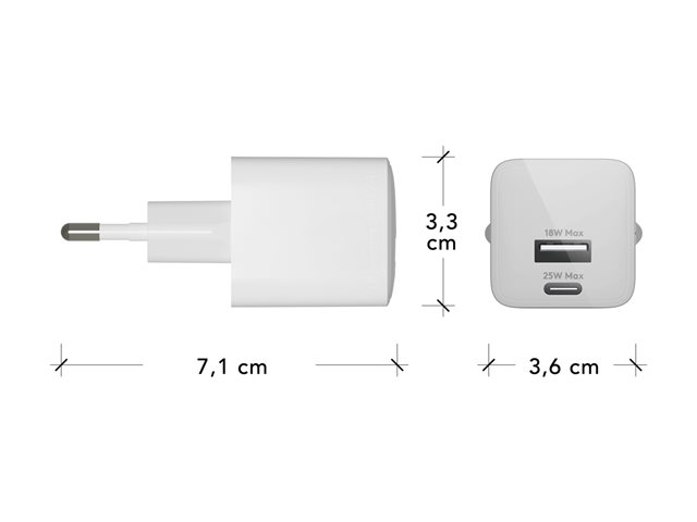 dbramante1928 re-charge - Strömadapter - 25 Watt - 2 utdatakontakter (USB-C, USB) - vit - Europa