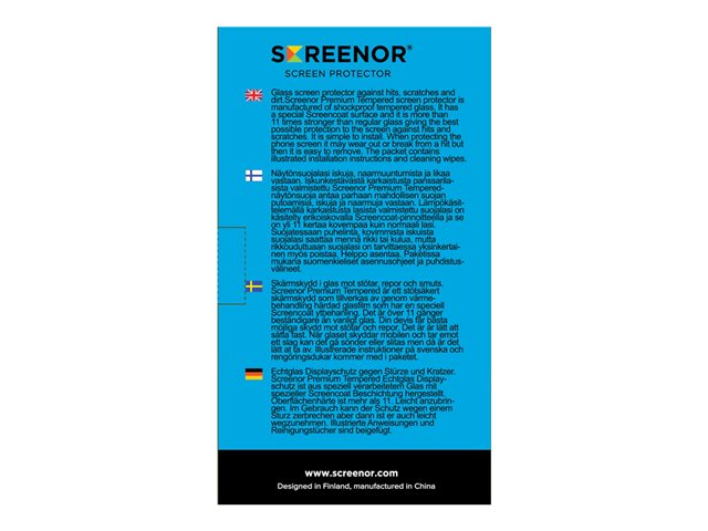 | Förpacknings innehåll | Skärmskydd, rengöringsduk, inriktningsklistermärke |