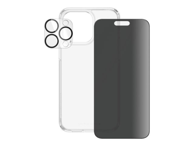 PanzerGlass Privacy - 3-i-1-paket - skyddskit skärm/objektiv/baksida för mobiltelefon - glas - med sekretessfilter - ramfärg svart - för Apple iPhone 15 Pro Max