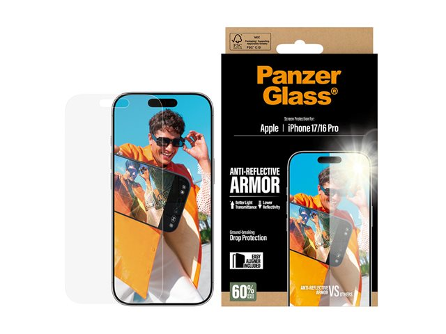 PanzerGlass - Skärmskydd för mobiltelefon - anti-reflective armor, with EasyAligner - glas - för Apple iPhone 16 Pro, 17