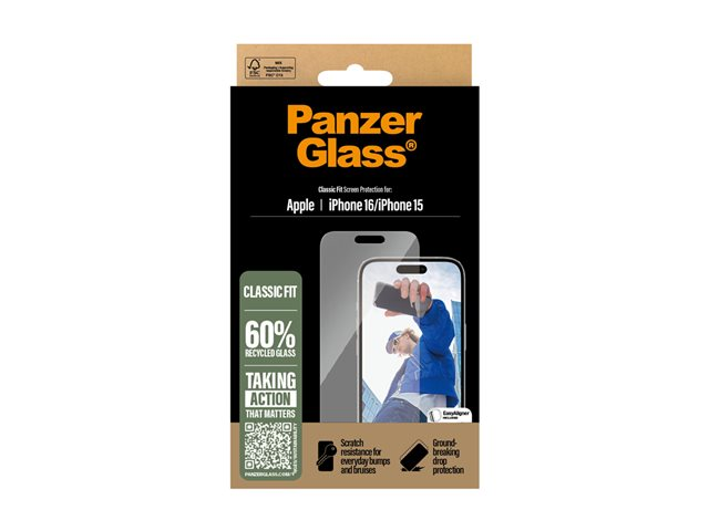 PanzerGlass - Skärmskydd för mobiltelefon - klassisk passning - glas - för Apple iPhone 15, 16