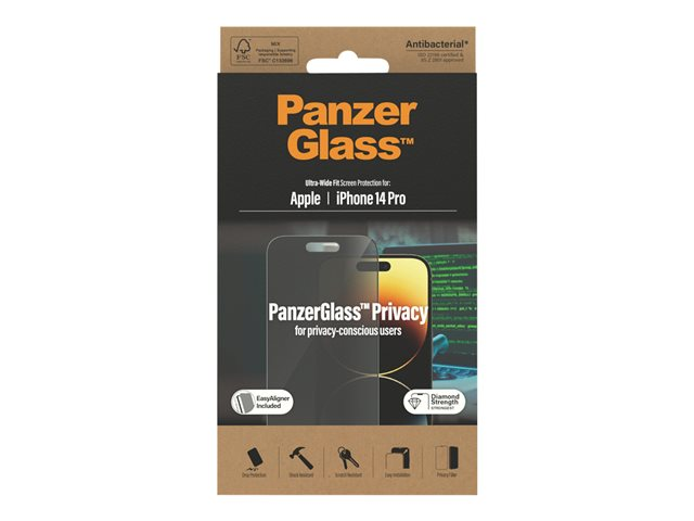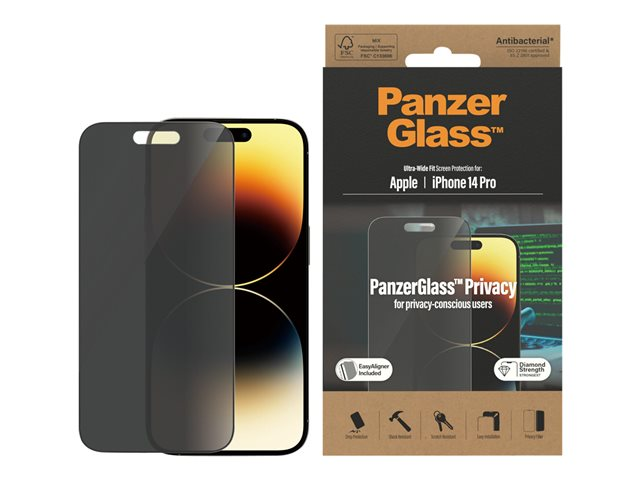 PanzerGlass - Skärmskydd för mobiltelefon - ultrabred passning - glas - med sekretessfilter - ramfärg svart - för Apple iPhone 14 Pro