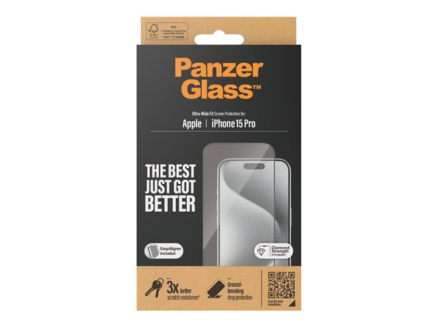 PanzerGlass - Skärmskydd för mobiltelefon - ultrabred passning med EasyAligner - glas - ramfärg svart - för Apple iPhone 15 Pro