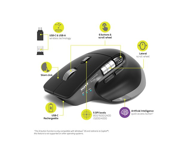 PORT Connect Professional ULTIMATE - Mus - laddningsbar - optisk - 6 knappar - trådlös - 2.4 GHz, Bluetooth - trådlös USB-mottagare