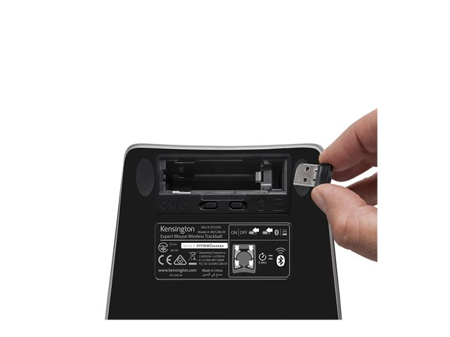 Kensington Expert Mouse Wireless Trackball - Styrkula - höger- och vänsterhänta - optisk - 4 knappar - trådlös - 2.4 GHz, Bluetooth 5.0 LE - Bluetooth USB-adapter - svart