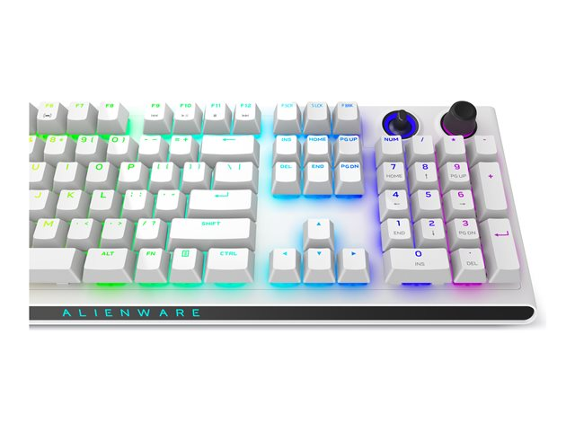 Alienware Tri-Mode AW920K - Tangentbord - AlienFX per tangent RGB / 16,8 miljoner färger - trådlös - 2.4 GHz, Bluetooth 5.1, USB - QWERTY - Amerikansk engelska - tangentbrytare: CHERRY MX Red - månljus