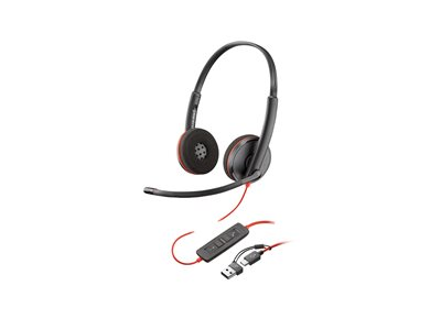 HP Poly Blackwire 3225 - Blackwire 3200 Series - headset - på örat - kabelansluten - 3,5 mm kontakt, USB-C - svart - Certifierad för Skype for Buisness, Cisco Jabber-certifierad, Avaya-certifierad, UC-certifierad