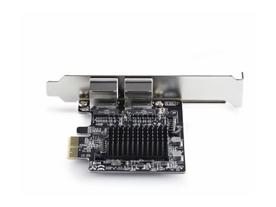 StarTech.com PR25GR-NETWORK-CARD är ett mångsidigt nätverkskort som är utformat för att förbättra din uppkopplingsupplevelse. Enheten har en plug-in-kortformfaktor med ett PCI Express 3.0 x2-gränssnitt och stöder en dataöverföringshastighet på upp till 5 Gbps via sina två RJ-45-kontakter. Den är kompatibel med en rad Ethernet-standarder, inklusive 10Base-T, 100Base-TX, 1000Base-T, 2,5GBase-T och 5GBase-T, vilket garanterar en stabil och pålitlig anslutning för olika nätverksbehov. Den anpassningsbara designen inkluderar stöd för jumbo-ramar med en storlek på 9000, vilket optimerar dataflödet för högpresterande applikationer. Nätverksadaptern är utrustad med VLAN-stöd och Wake On LAN (WOL), vilket förbättrar dess funktionalitet i en rad olika miljöer. Dessutom visar överensstämmelsen med FCC- och RoHS-standarder, samt TAA-överensstämmelse, dess tillförlitlighet och efterlevnad av regler. Med en driftstemperatur på 5 °C till 65 °C är denna produkt lämplig för olika installationer, vilket gör den till ett idealiskt val för uppgradering av nätverkskapaciteten.