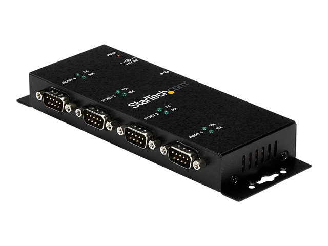 StarTech.com USB till DB9 RS232 seriell adapterhubb med 4 portar - Industriell DIN Rail och väggmonterbar - Seriell adapter - USB 2.0 - RS-232 x 4 - svart