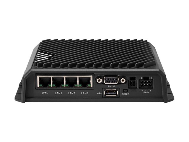 | Gränssnitt | WAN / LAN: 4 x 10Base-T/100Base-TX/1000Base-T - RJ-45 USB 2.0: 1 x 4-stifts USB typ A Seriell: 1 x RS-232 - 9 pin D-Sub (DB-9) Antenn: 5 x SMA Antenn: 3 x RP-SMA 1 x GPIO Kringutrustning: 1 x |