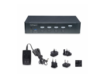 StarTech.com 4-Port DisplayPort KVM Switch, 4K 60Hz, TAA Compliant - Omkopplare för tangentbord/video/mus/ljud/USB - 4 x KVM/ljud/USB - 1 lokal användare - skrivbordsmodell - TAA-kompatibel