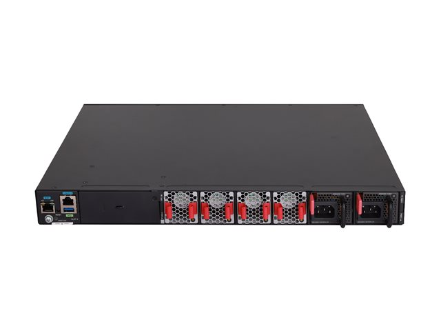 | Funktioner | Nivå 2-växling, VXLAN, IRF Technology, ETS, QoS, LLDP, MSTP-stöd, MVRP, UDP, MLD, Address Resolution Protocol, BFD, återställningsnyckel |