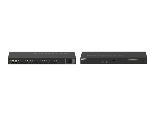 | Gränssnitt | 16 x 1/10GBase-X SFP+ 1 x hantering (Gigabit LAN) RJ-45 1 x konsol RJ-45 1 x USB Type A 1 x konsol (USB) Type C |