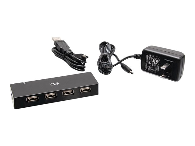 C2G 4-Port USB-A Hub with 5V 2A Power Supply - Hubb - 4 x USB 2.0 - skrivbordsmodell