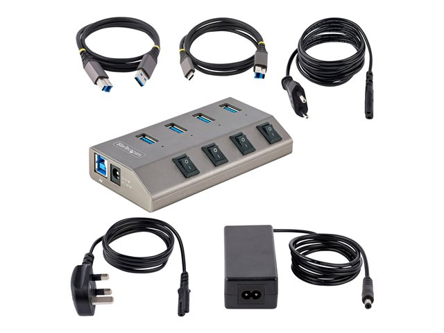 StarTech.com 4-Port Self-Powered USB-C Hub with Individual On/Off Switches, USB 3.0 5Gbps Expansion Hub w/Power Supply, Desktop/Laptop USB-C to USB-A Hub, 4x BC 1.2 (1.5A), USB Type C Hub - USB-C/A Host Cables (5G4AIBS-USB-HUB-EU) - Hubb - 4 x USB 3.2 Gen 1 - skrivbordsmodell