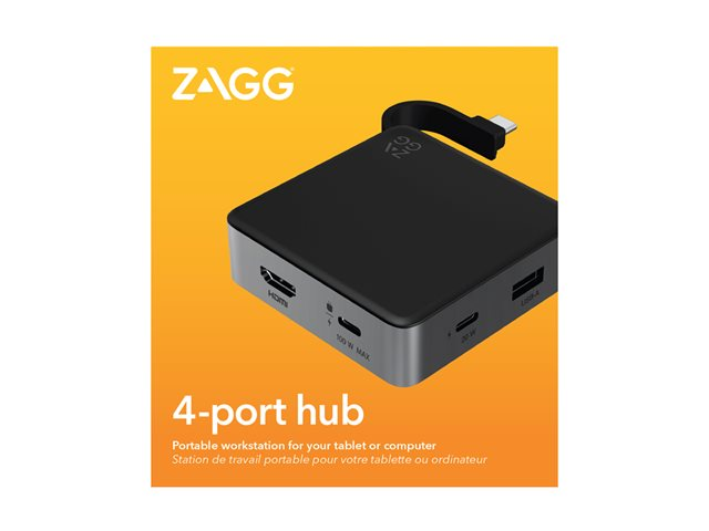 ZAGG - Hubb - 1 x USB-C (Power Delivery 3.0) + 1 x USB-C (strömgenomströmning) + 1 x USB-A 3.0 + 1 x HDMI - skrivbordsmodell