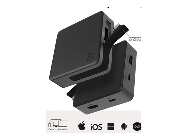 ZAGG - Hubb - 1 x USB-C (Power Delivery 3.0) + 1 x USB-C (strömgenomströmning) + 1 x USB-A 3.0 + 1 x HDMI - skrivbordsmodell