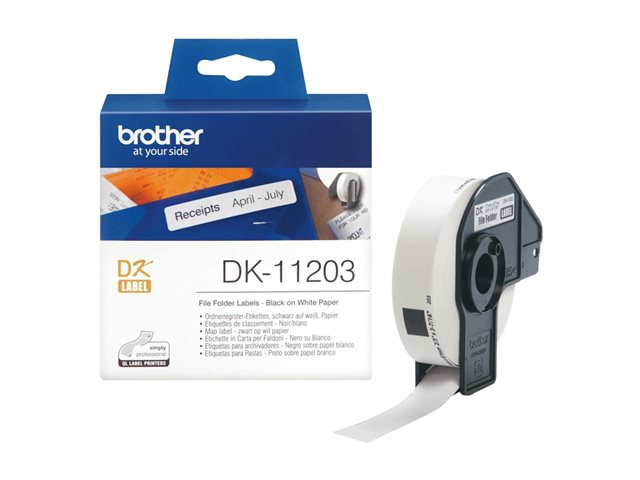 Brother DK-11203 - Svart på vitt - 17 x 87 mm 300 etikett (er) (1 rulle/rullar x 300 etiketter för filmappar - för Brother QL-1050, QL-500, QL-550, QL-560, QL-570, QL-650, QL-710, QL-720, QL-820