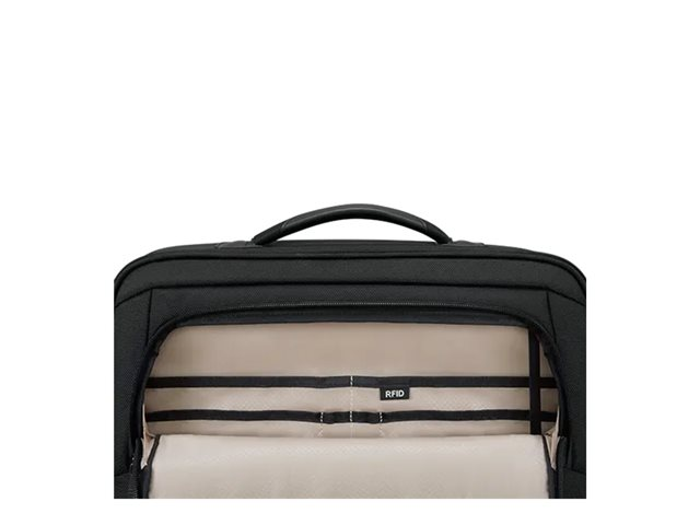 | Ytterligare utrymmen | Vadderat fack för bärbar dator, RFID-ficka, blixtlåsförsedd ficka fram |