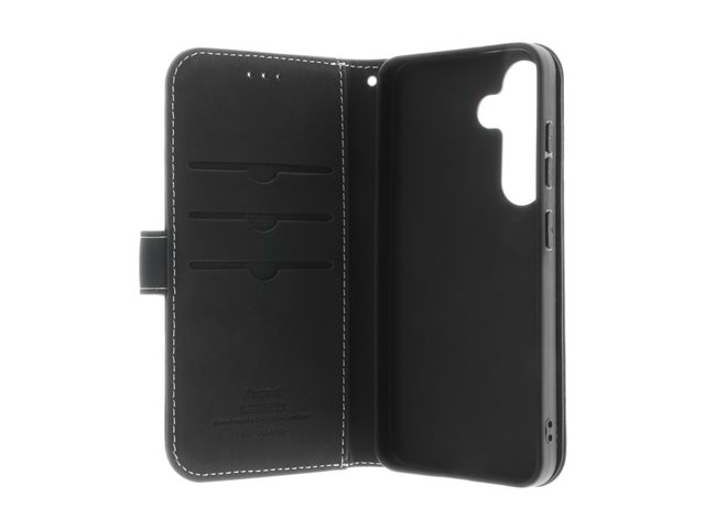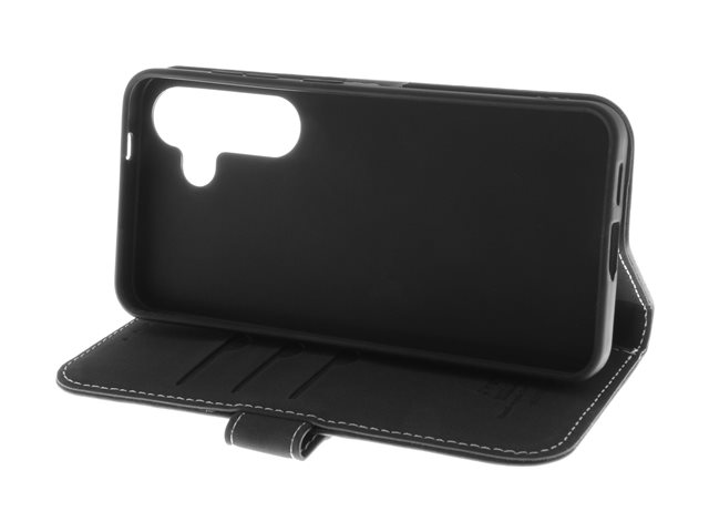 Insmat Exclusive - Vikbart fodral för mobiltelefon - läder, termoplastisk polyuretan (TPU), bomullssömmar, galvaniserad bronsring - svart - för Samsung Galaxy S26+
