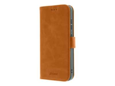 Insmat Premium - Vikbart fodral för mobiltelefon - läder, kartong+papper+aluminiumfolie, termoplastisk polyuretan (TPU), bomullssömmar - brun - för Samsung Galaxy S26+