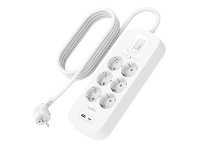 Belkin Connect - Överspänningsskydd - med USB-C- och USB-A-portar - utgångskontakter: 6 - 2 m sladd