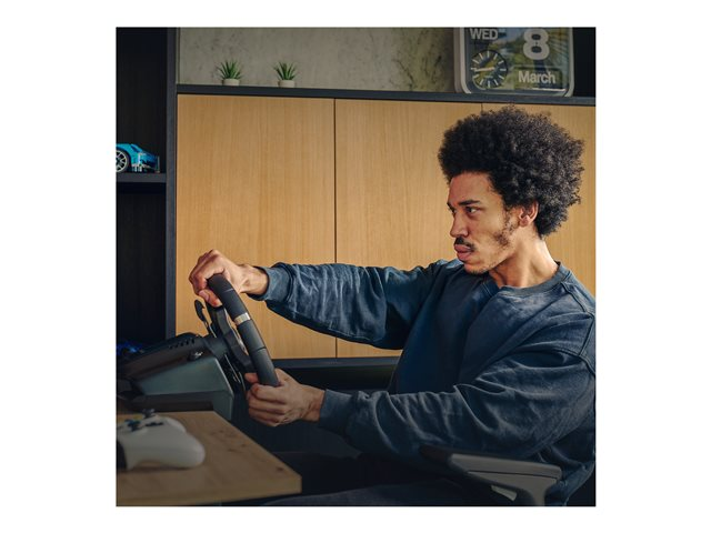 Tillverkad för perfekt körupplevelse med dubbelmotorig force feedback, rattväxlar i rostfritt stål och handklädd läderratt. Med de justerbara golvpedalerna gasar, bromsar och växlar du med samma känsla som i en riktig bil.